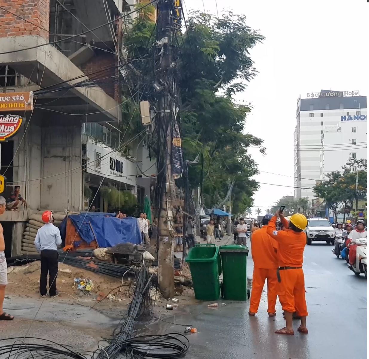 Theo thông tin ban đầu, vào khoảng 17h ngày 7/12, tại khu vực trước công trình xây dựng (nằm trên đường Nguyễn Văn Thoại, phường Mỹ An, quận Ngũ Hành Sơn, TP. Đà Nẵng) người dân phát hiện đường dây điện bắt qua khu vực này bất ngờ phát nổ, kéo theo đó là nhiều bó dây cáp viễn thông treo trên trụ điện cũng bị chập điện và bùng cháy dữ dội.