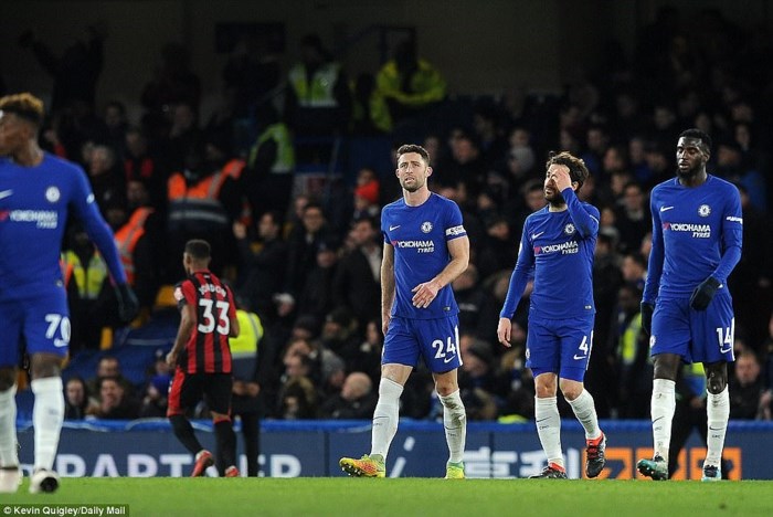 Trước khi bước vào trận đấu với Bournemouth, thành tích của Chelsea là tương đối tốt. Đội bóng thành London giữ sạch lưới tới 5 trong 7 trận gần nhất. Tuy nhiên, thảm bại trước Bournemouth khiến Chelsea tụt xuống thứ 4 trên BXH, cùng 50 điểm như Liverpool nhưng kém chỉ số phụ và chỉ còn hơn Tottenham, đội mới hạ bệ Man United 2-0 có 2 điểm mà thôi.
