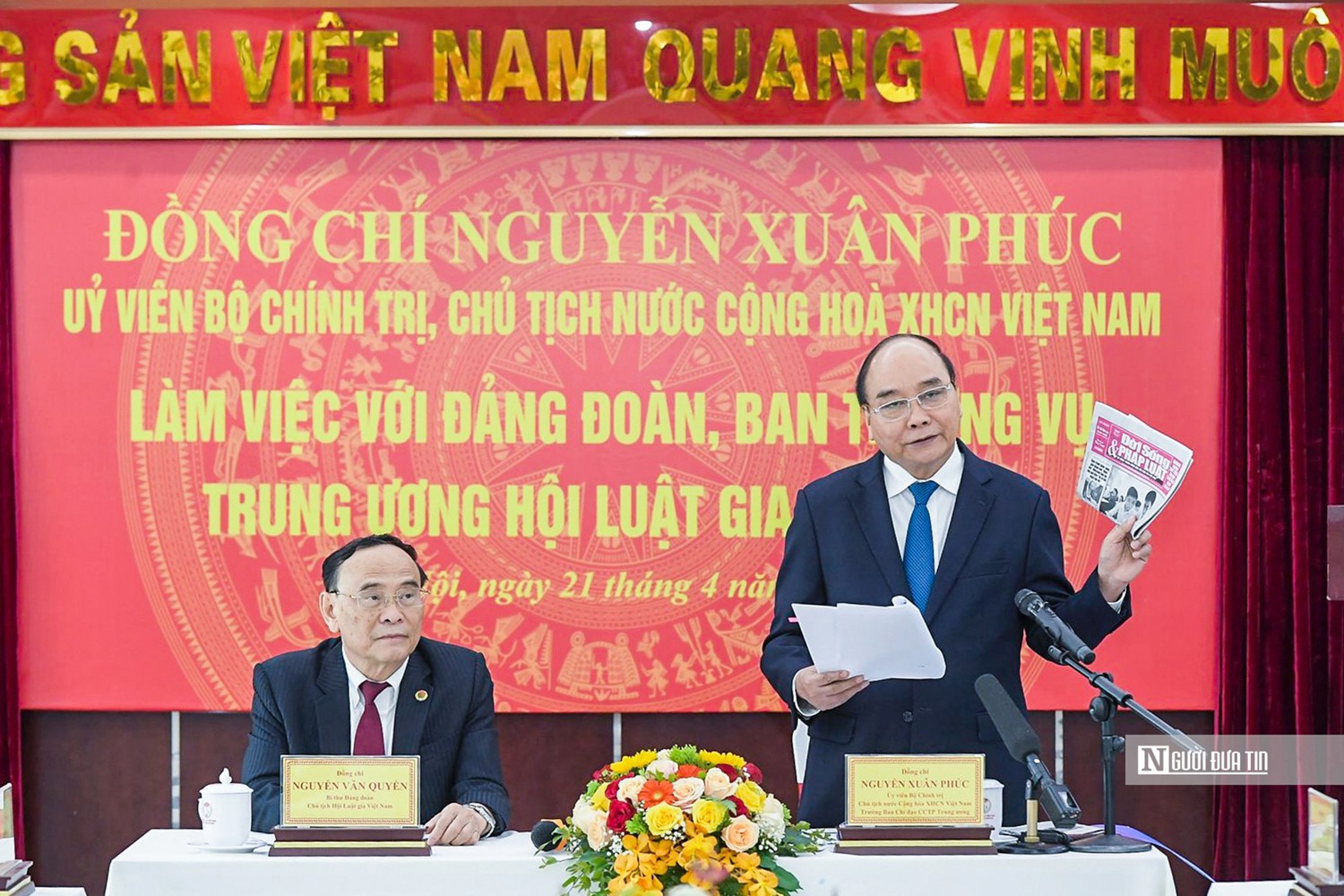 Chủ tịch Nguyễn Văn Quyền: Có thể nói, sau 20 năm thực hiện Chỉ thị 56, Hội Luật gia Việt Nam đã đạt được nhiều kết quả như đã nêu. Tuy nhiên, trong quá trình triển khai thực hiện, sơ kết, tổng kết, Chỉ thị 56 đã được Kết luận 19-KL/TW và Thông báo kết luận số 50 của Ban Bí thư điều chỉnh, bổ sung một số nội dung mới.
