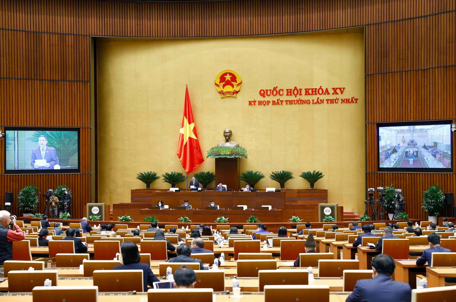 Sau đó, Quốc hội biểu quyết thông qua Nghị quyết kỳ họp bất thường lần thứ nhất, Quốc hội khóa XV. Chủ tịch Quốc hội Vương Đình Huệ phát biểu bế mạc kỳ họp.