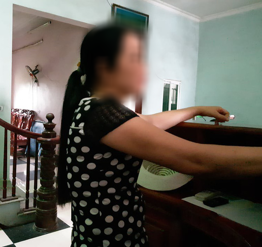 Sau khoảng 5 phút bà nghe tiếng khóc ở trên phòng. Chưa kịp lên kiểm tra thì có 3 nam thanh niên đi xe máy vào trong nói tìm người. “Họ vào tìm ở phòng 303 không được, hỏi tôi, khi tôi dẫn họ lên phòng 205 thì chỉ thấy cô gái ở đó đang kéo lại quần áo. Thấy vậy, 3 thanh niên có dẫn cô gái xuống tầng 1 rồi đi ra cửa nhà nghỉ đứng nói chuyện” – người phụ nữ nói.