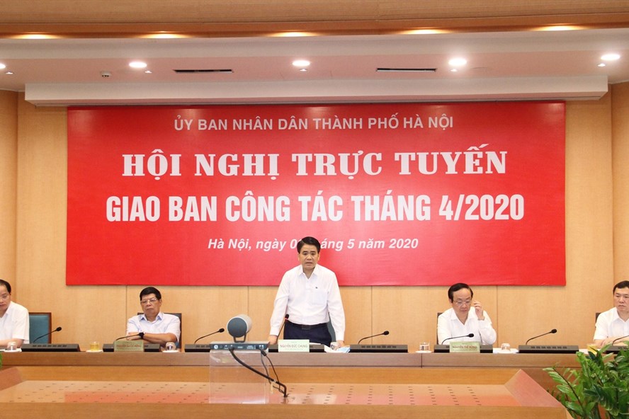 Sáng ngày 6/5, Chủ tịch UBND TP.Hà Nội Nguyễn Đức Chung chủ trì hội nghị trực tuyến giao ban công tác tháng 4/2020 của UBND thành phố.