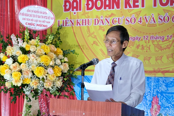 Thay mặt Đoàn Chủ tịch Ủy ban Trung ương Mặt trận Tổ quốc Việt Nam, ông Nguyễn Văn Quyền, Uỷ viên Đoàn Chủ tịch Uỷ ban Trung ương MTTQVN, Bí thư Đảng đoàn, Chủ tịch Hội Luật gia Việt Nam đã về tham dự và phát biểu tại đây.