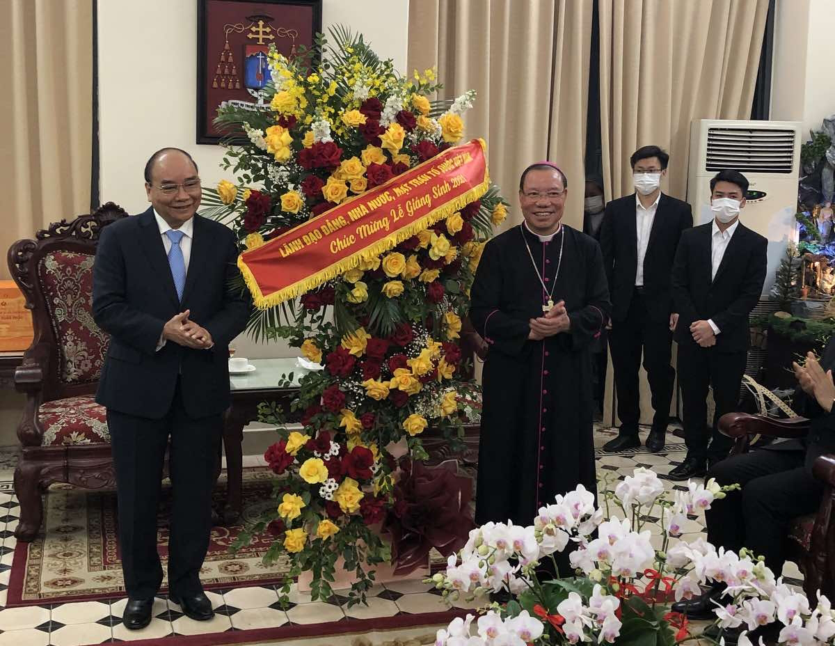 Thăm Tòa Tổng Giám mục Hà Nội, thay mặt lãnh đạo Đảng, Nhà nước, Ủy ban Trung ương Mặt trận Tổ quốc Việt Nam, Chủ tịch nước Nguyễn Xuân Phúc trân trọng chúc Tổng Giám mục Joseph Vũ Văn Thiên, Tổng Giám mục Tổng Giáo phận Hà Nội, Phó Tổng Thư ký Hội đồng Giám mục Việt Nam; các vị linh mục, tu sĩ và đại diện các giáo xứ, dòng tu của Tổng Giáo phận Hà Nội đón một mùa Giáng sinh an lành, vui vẻ, tràn đầy hồng ân Thiên Chúa.