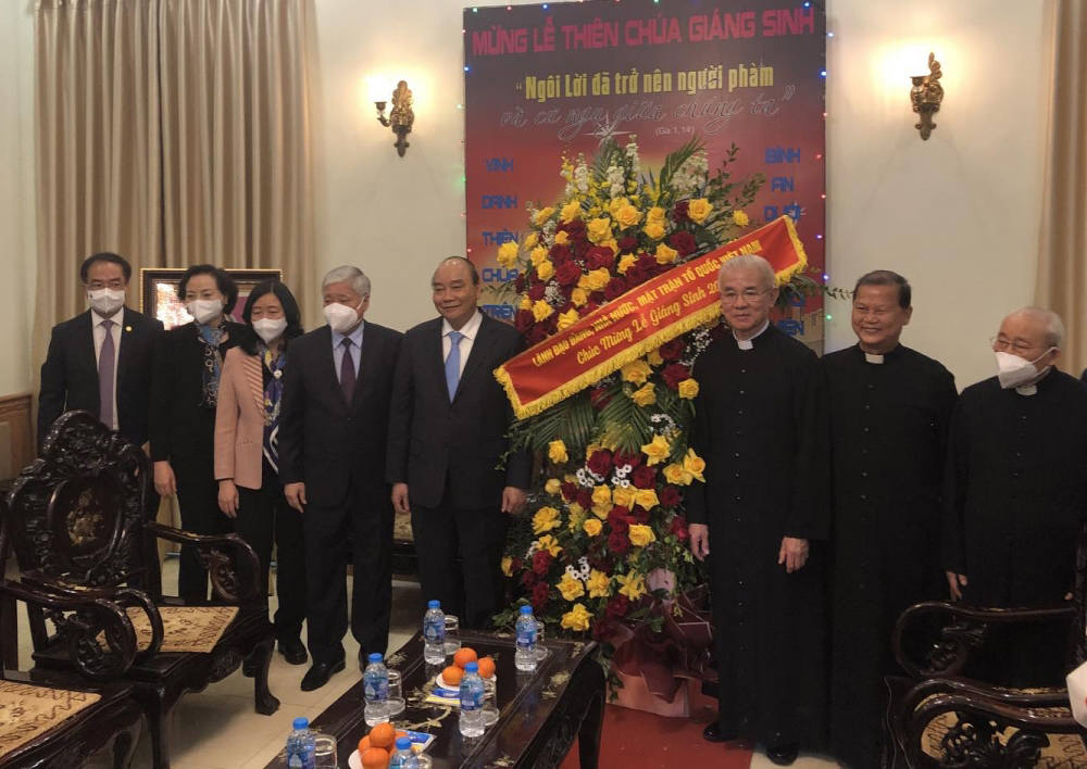 Sáng cùng ngày, Chủ tịch nước Nguyễn Xuân Phúc đã đến thăm, chúc mừng Trung ương Ủy ban Đoàn kết Công giáo Việt Nam nhân dịp đón mừng Giáng sinh năm 2021.