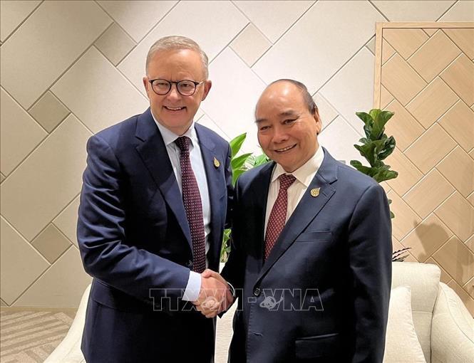 Trước đó, vào tối 17/11, tại cuộc gặp Thủ tướng Australia Anthony Albanese, Chủ tịch nước Nguyễn Xuân Phúc chúc mừng những thành tựu Chính phủ Công đảng Australia đã đạt được sau cuộc bầu cử Quốc hội liên bang vừa qua, đặc biệt là trong các lĩnh vực kinh tế, an sinh xã hội, ứng phó với biến đổi khí hậu...