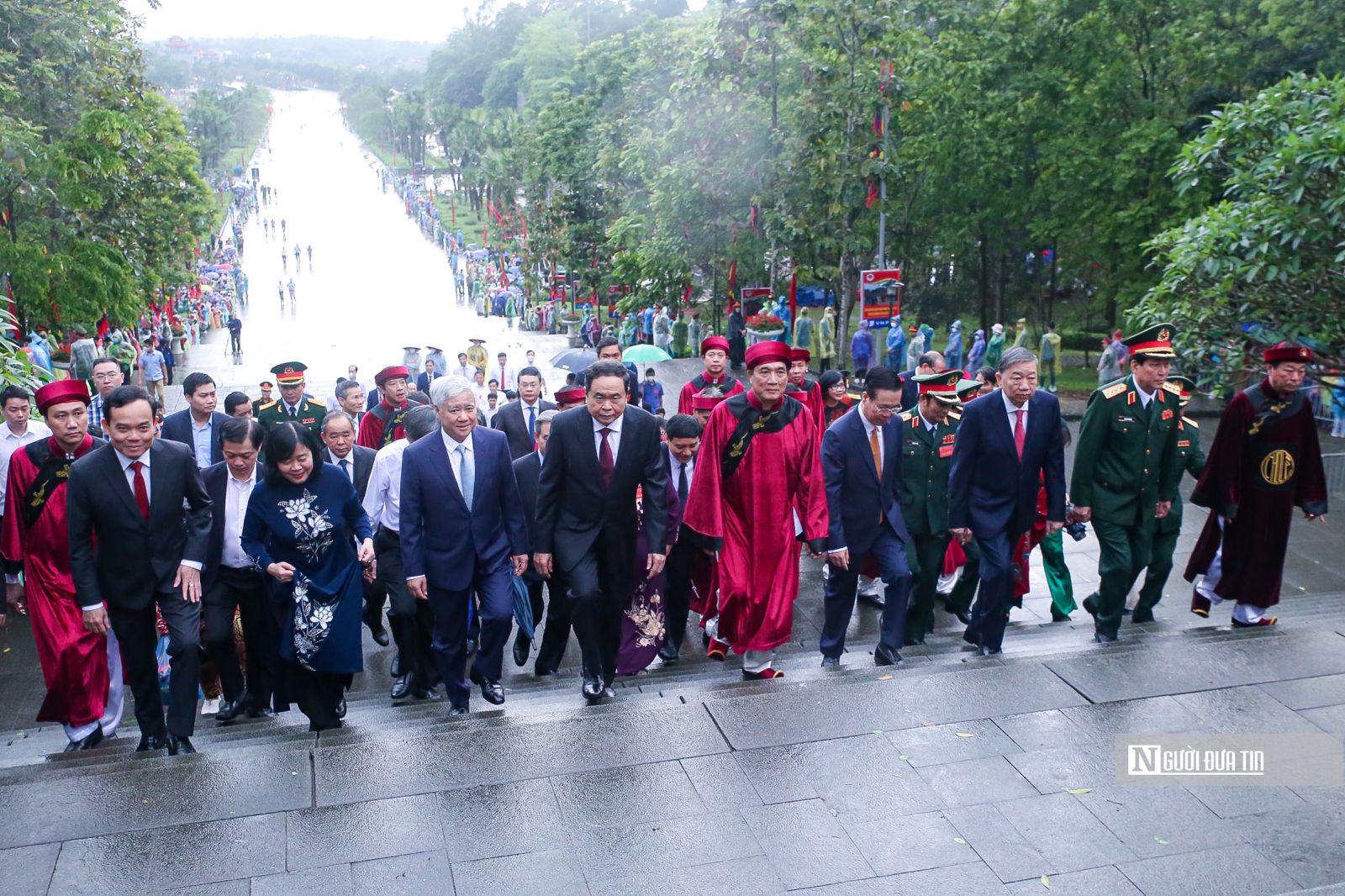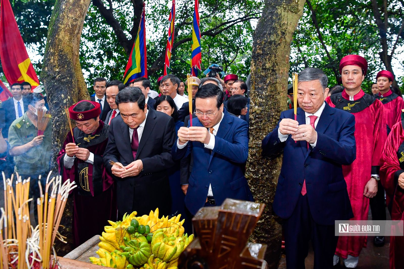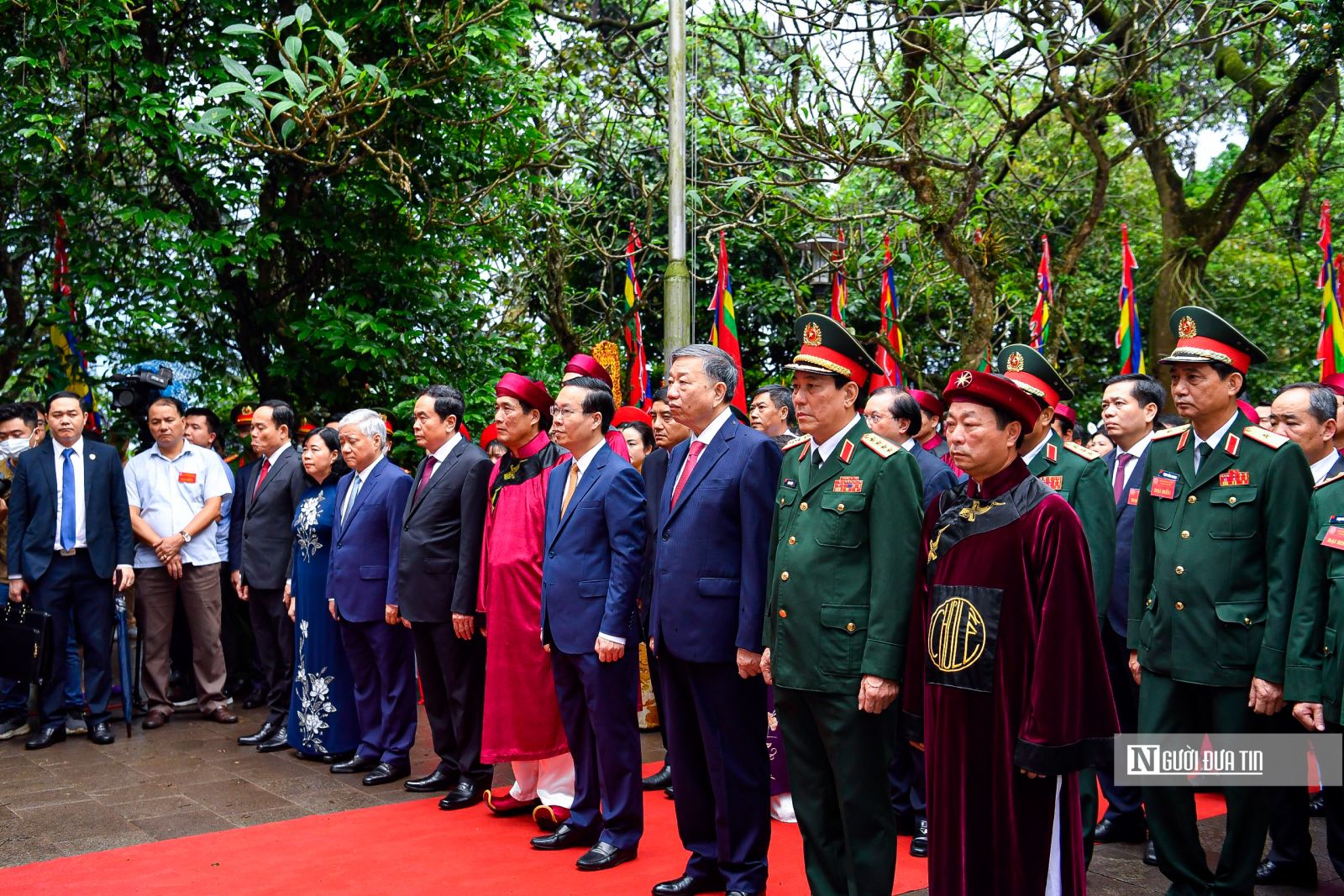 Chủ tịch nước Võ Văn Thưởng cùng các vị lãnh đạo Đảng, Nhà nước, lãnh đạo các ban, bộ, ngành Trung ương và các tỉnh, thành phố… đã thành kính dâng hương, hoa, lễ vật tưởng nhớ, tri ân công đức các vua Hùng.