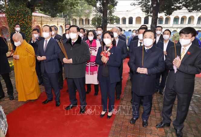 Trong không khí trang nghiêm tại Hoàng thành Thăng Long, Chủ tịch Quốc hội Vương Đình Huệ cùng các đại biểu đã thành kính dâng hương tưởng nhớ các bậc tiền nhân có công với đất nước; cầu cho quốc thái dân an.