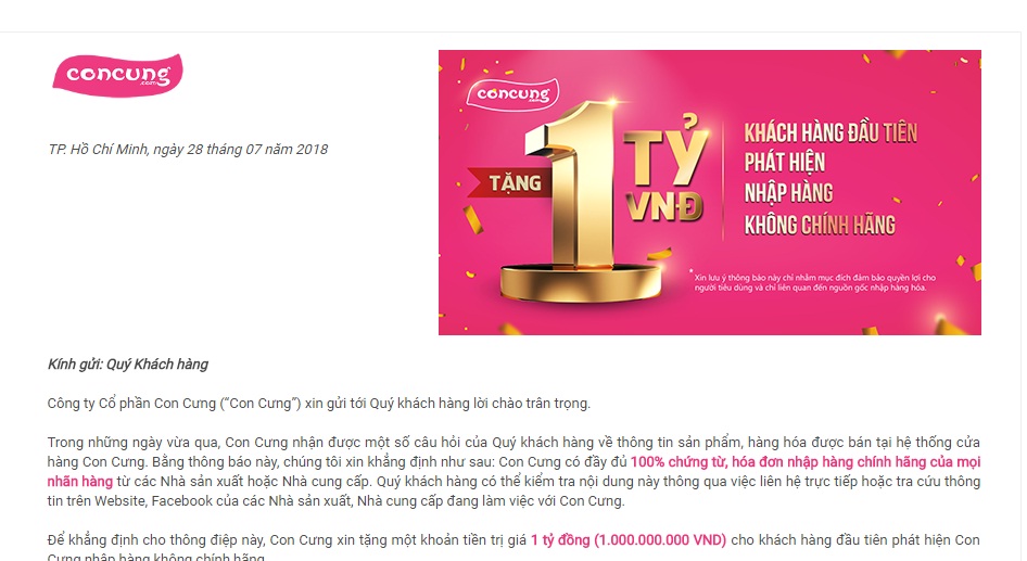 Đây là thông điệp nhằm xoa dịu dư luận của Con Cưng sau vụ lùm xùm bị khách hàng phản ánh, khiếu nại về chất lượng sản phẩm.