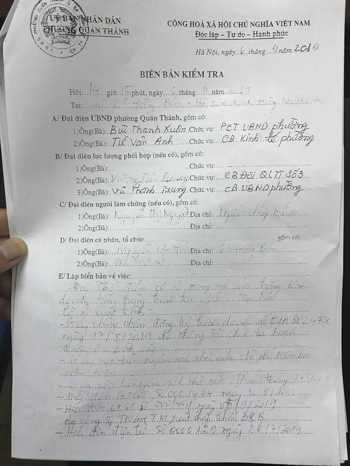 PV PhapluatNet đã có buổi làm việc với UBND phường Quán Thánh, trao đổi với phóng viên, ông Võ Hồng Vinh – Chủ tịch phường cho biết: “Ngày 06/09/2019, đại diện UBND phường Quán Thánh cùng Cán bộ đội QLTT số 3 đã tiến hành kiểm tra cửa hàng Hàng Nhật Nội Địa có địa chỉ ở số 65 Hàng Bún.
