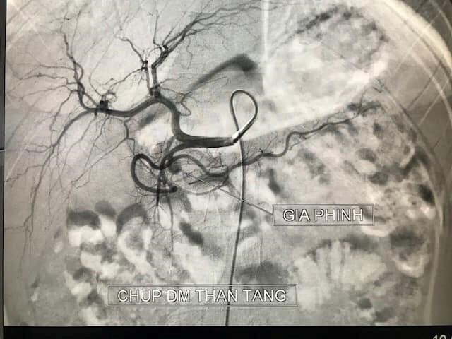 Nhận định đây là trường hợp viêm tụy cấp nặng, nguy cơ chảy máu ổ ạt đe dọa tính mạng nên ngay lập tức bệnh nhi được chỉ định can thiệp nút mạch cấp cứu.