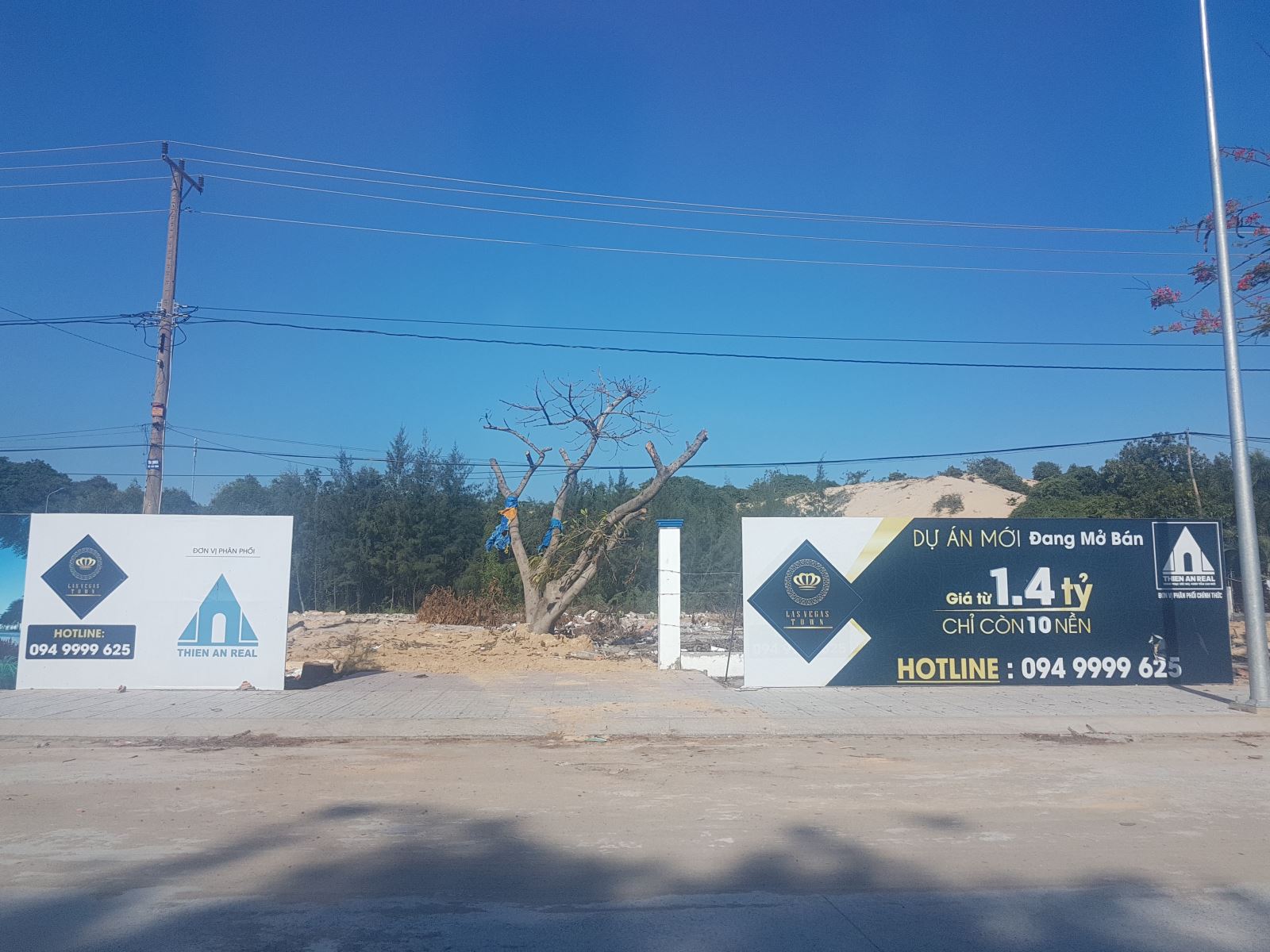 Theo ghi nhận thực tế của PV tại vị trí dự án, hiện nay, toàn bộ dự án này vẫn đang chỉ là bãi đất trống với các tấm pano quảng cáo được dựng lên nhằm giới thiệu về dự án Lasvegas Hotel đang được mở bán với giá từ 1,4 tỷ đồng, chỉ còn 10 nền. Trong vai khách hàng có nhu cầu đầu tư, sau khi gửi lại thông tin cá nhân trên website của công ty, chỉ khoảng 15 phút sau đó, PV đã nhận được điện thoại tư vấn của 1 người đàn ông tên Tráng (tự nhận là nhân viên của công ty) giới thiệu chi tiết hơn về dự án này.