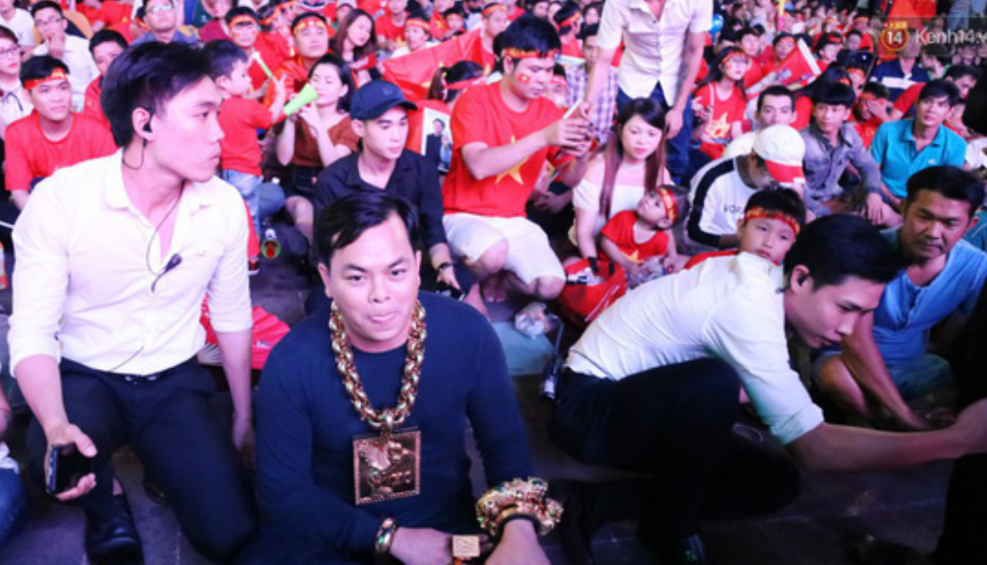 Ngoài ra, trong trận bán kết lượt về giữa Việt Nam và Philippines tại giải bóng đá AFF Suzuki Cup 2018, Phúc XO cũng xuất hiện tại phố đi bộ Nguyễn Huệ, quận 1, trên người đeo nhiều trang sức bằng vàng khủng, có khối lượng lên đến 13kg vàng. Tất nhiên, với sự khác biệt này, Phúc XO nổi bật giữa nhóm cổ động viên cổ vũ cho đội tuyển Việt Nam tại giải đấu này.