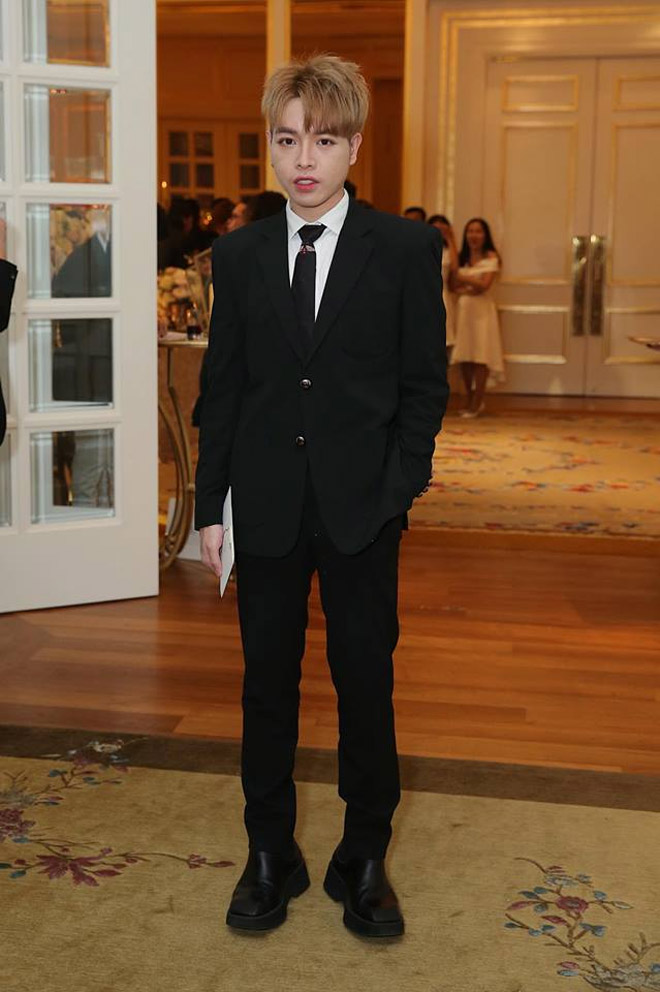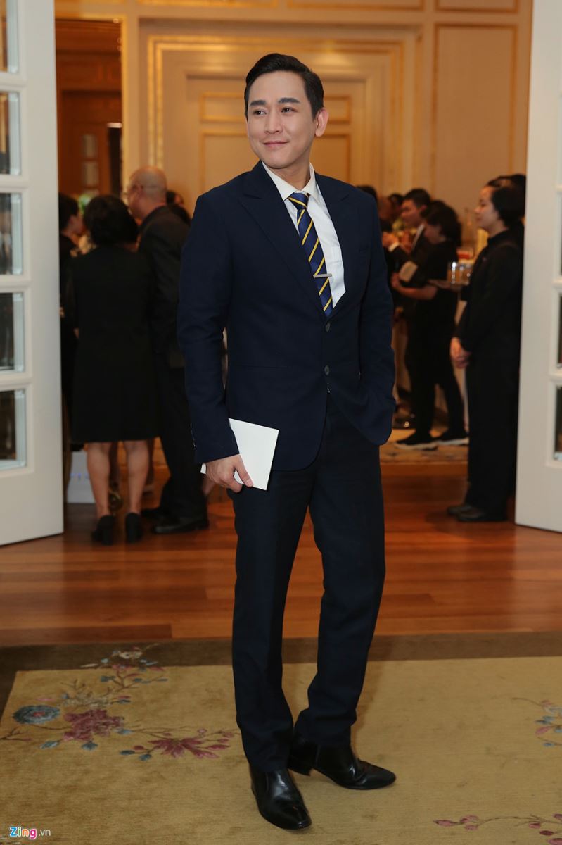 Hứa Vĩ Văn trung thành với phong cách lịch lãm khi lựa chọn bộ suit xanh. Ở độ tuổi 40, anh vẫn giữ được sự phong độ.