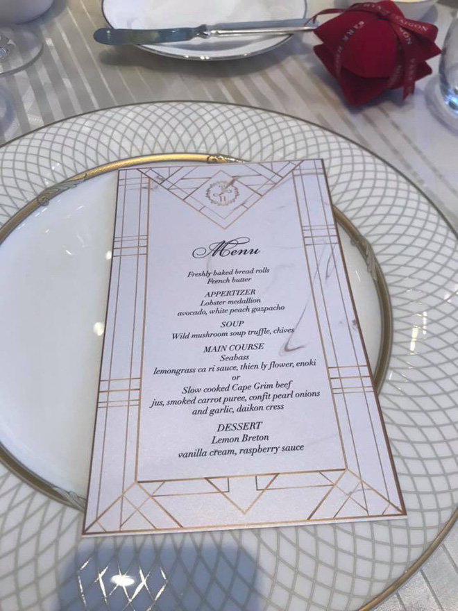 Thực đơn tiệc cưới với những món ăn sang trọng.