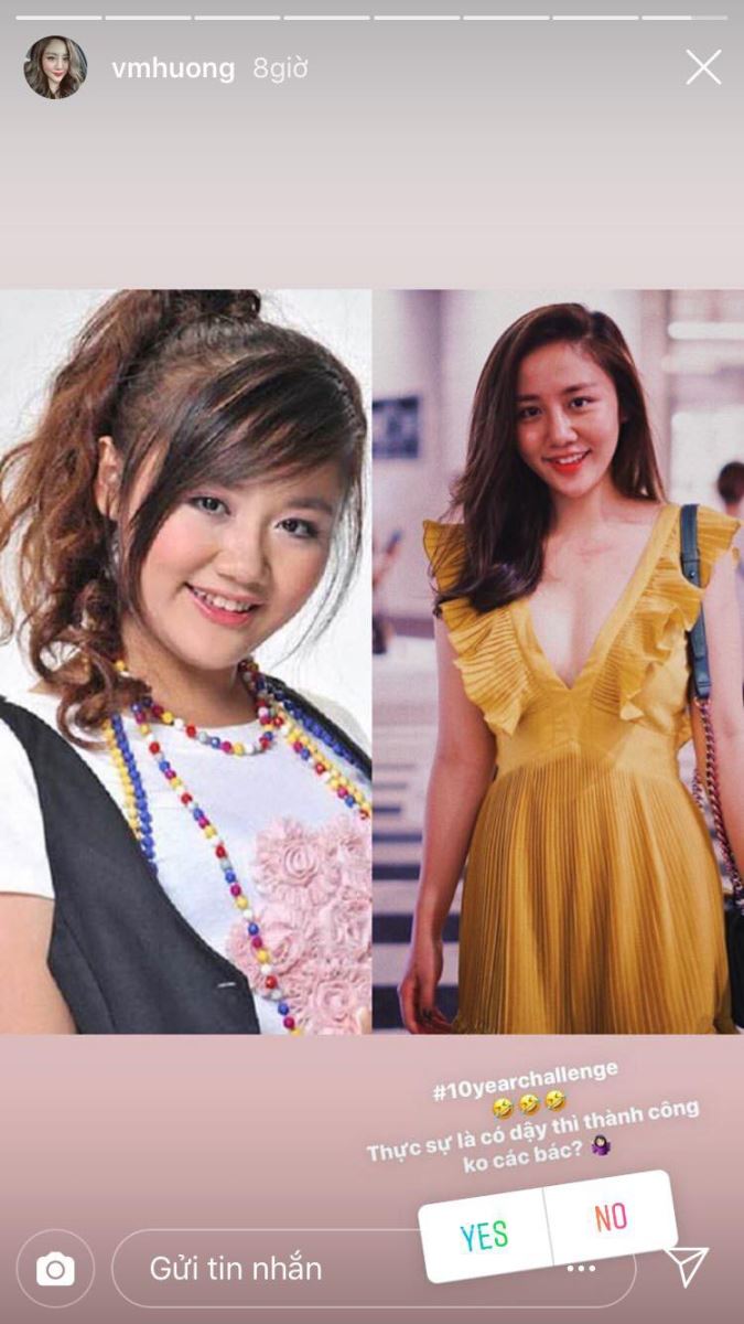 Văn Mai Hương đăng ảnh thời còn sở hữu ngoại hình khá mũm mĩm để so sánh với bức hình đầy thon gọn, quyến rũ như hiện tại. Nữ ca sĩ còn dí dỏm hỏi khán giả: "Thực sự là có dậy thì thành công không các bác?".