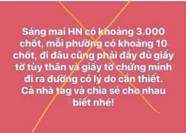 Trước đó, 23h ngày 25/7, bà T. đã sử dụng tài khoản Facebook cá nhân đăng lên một nhóm mua bán trên mạng xã hội dòng trạng thái có nội dung: "Sáng mai Hà Nội có khoảng 3.000 chốt, mỗi phường có khoảng 10 chốt, đi đâu cũng phải đầy đủ giấy tờ tùy thân và giấy tờ chứng minh đi ra đường có lý do cần thiết. Cả nhà tag và chia sẻ cho nhau biết nhé".