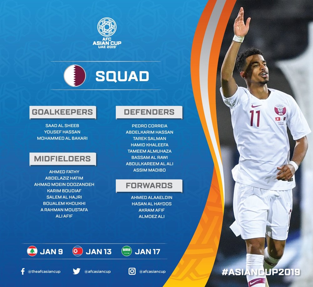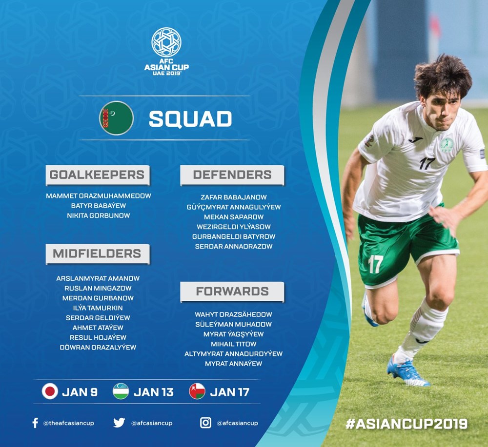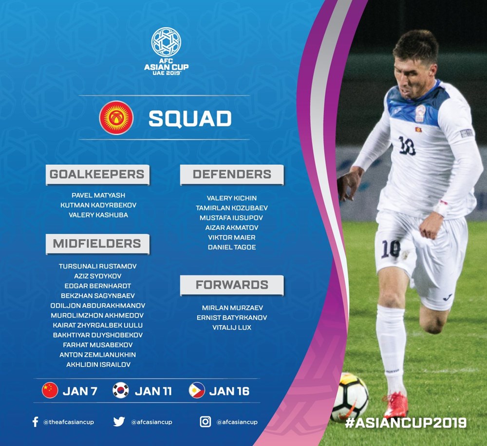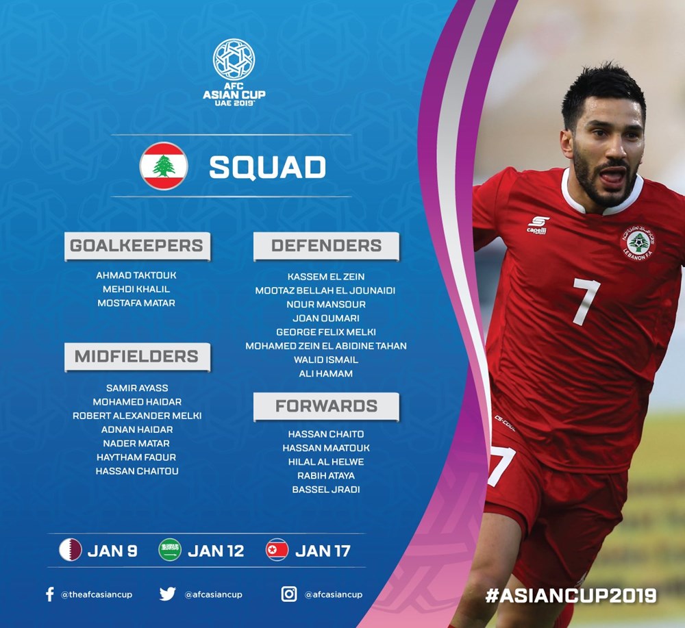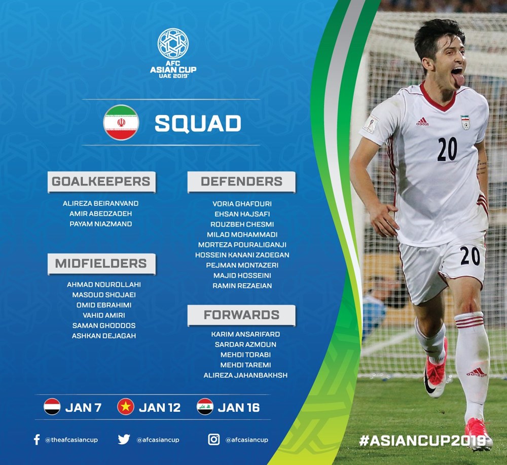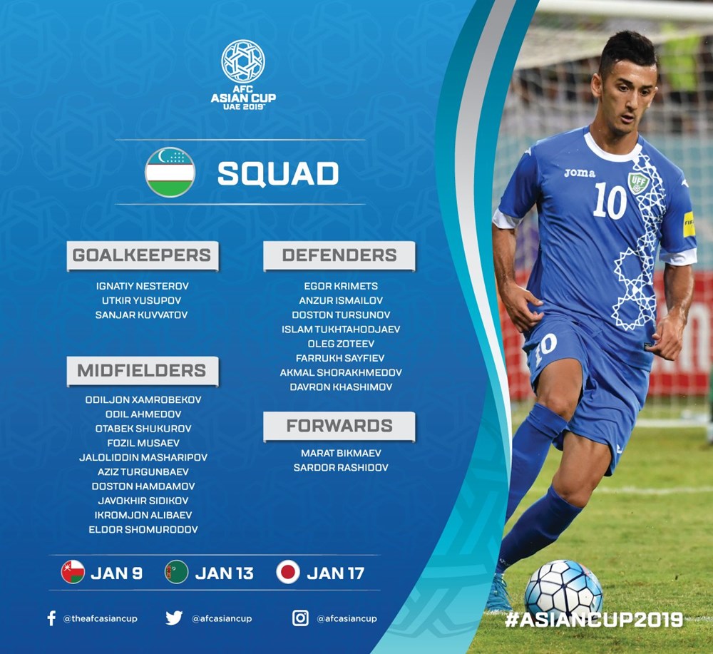 AFC đã đăng tải danh sách chi tiết cầu thủ của 24 đội tuyển tham dự vòng chung kết Asian Cup 2019. Tuy nhiên, các đội vẫn được phép thay đổi 1 cầu thủ trước khi giải đấu diễn ra.