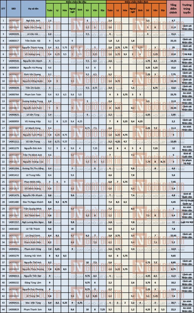 Trong số 44 thí sinh này có thí sinh Nguyễn Hoàng Cúc, là con gái của một lãnh đạo cấp cao tại sở GD&ĐT Sơn La, hiện theo học đại học Sư phạm Hà Nội. Tuy nhiên, điểm sau chấm thẩm định của em Cúc vẫn đủ để theo học tại trường.