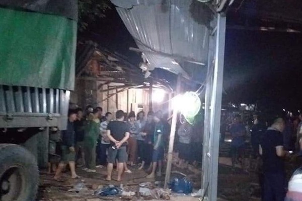 Tại hiện trường, xe đầu kéo bị hỏng nát phần đầu, ngôi nhà của người dân bị hư hỏng nặng, nhiều mét tường bị sập đổ. Được biết, trong ngôi nhà bị xe húc sập có 4 người. May mắn, lúc xảy ra vụ việc, 2 người con không ngủ chung với bố mẹ nên mới thoát nạn.