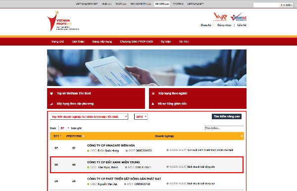 Đáng chú ý là việc vươn lên mạnh mẽ của Đất Xanh Miền Trung. So với năm 2018, doanh nghiệp này đã tăng hơn 50 bậc, đứng ở vị trí thứ 58 để lần đầu tiên góp mặt trong top 100 doanh nghiệp lợi nhuận tốt nhất. Thành tích này càng khẳng định vị thế của thương hiệu của Đất Xanh Miền Trung tại thị trường Việt Nam.