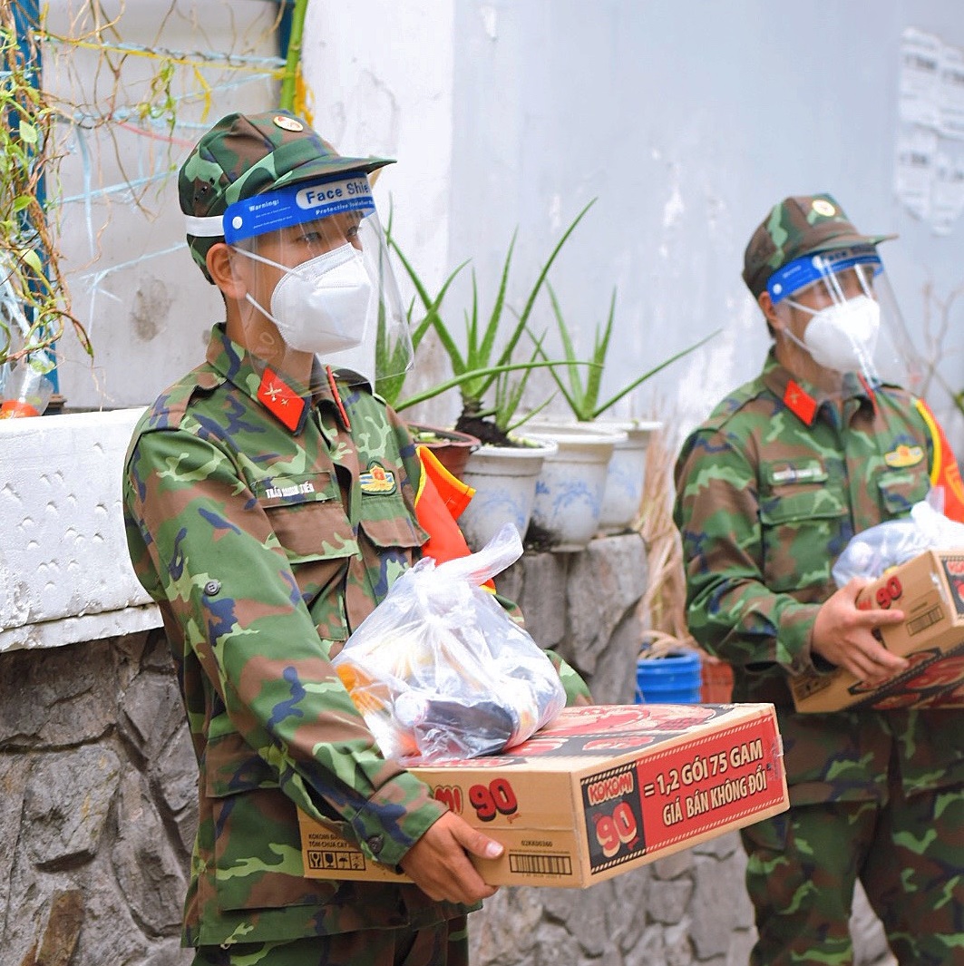 Hiện nay, tất cả các quận, huyện và thành phố Thủ Đức đã phân công nhiệm vụ cụ thể cho lực lượng quân đội tham gia hỗ trợ công tác chống dịch của địa phương. Chính vì vậy, tại những chốt kiểm soát, trên đường, siêu thị, chung cư, khu dân cư... người dân dễ dàng bắt gặp hình ảnh những chiến sĩ đi phát quà an sinh hay đi giao hàng, khám bệnh cho F0...
