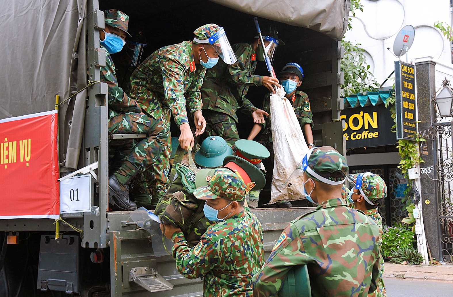 Báo Tin tức xin gửi đến độc giả hình ảnh các chiến sĩ quân đội đi giúp dân trong mùa dịch tại TP Hồ Chí Minh: