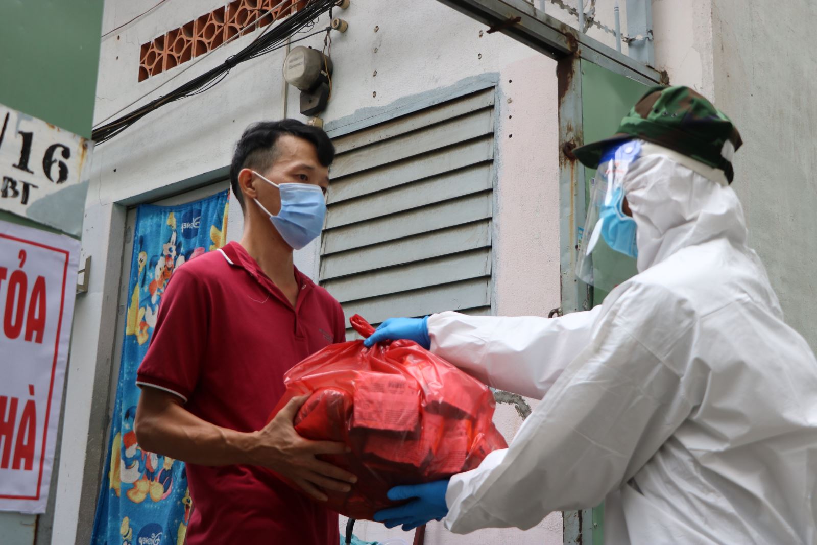 "Ngày 23/8, chúng tôi có đi tiền trạm tại một con hẻm trên đường Hai Bà Trưng, Quận 1. Trong con hẻm này có hai hộ dân nhờ chúng tôi mua dùm thuốc và thực phẩm, chúng tôi đã nhận thông tin và về báo lại phường. Sau khi lấy thông tin, phường sẽ chuẩn bị hàng hóa để chúng tôi vận chuyển đến tận nhà cho người dân", Thượng uý Nguyễn Văn Nghĩa cho biết.