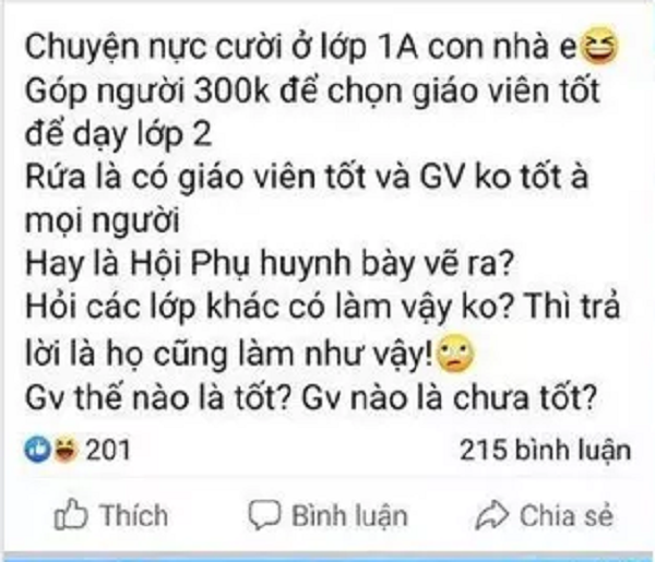 Là một người mẹ, tôi cũng muốn con mình được học môi trường tốt để đạt kết quả cao nhất có thể. Thế nhưng, việc phụ huynh kêu gọi góp tiền để chọn giáo viên liệu có thực sự cần thiết hay không? Tệ hơn, vì sao nó lại cần thiết?