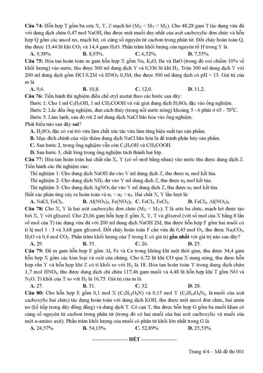Sáng ngày 26/6, các thí sinh tham gia kỳ thi THPT Quốc Gia 2019 làm bài trắc nghiệm môn Hóa học bao gồm 40 câu với thời gian 50 phút.
