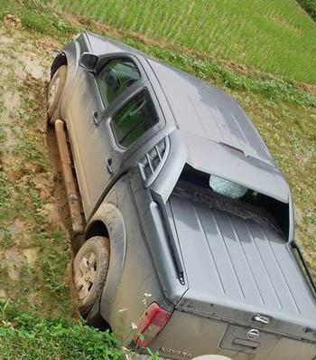 Hình ảnh chiếc ô tô bị lao xuống ruộng