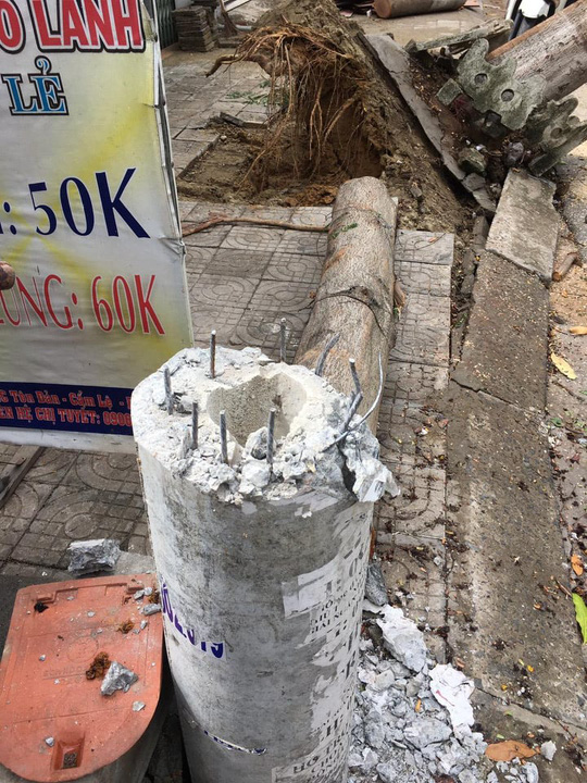 Khi có lực tác động lớn làm gãy cột thì các sợi thép này có xu hướng tụt vào bên trong thân cột (khoảng 1cm, do trước đó đã được kéo giãn). Điện lực Đà Nẵng nhận định, nguyên nhân chính việc gãy cột điện là do ảnh hưởng của bão số 5 làm cây to ngã đè vào đường dây, tác động lực quá lớn kéo gãy cột.