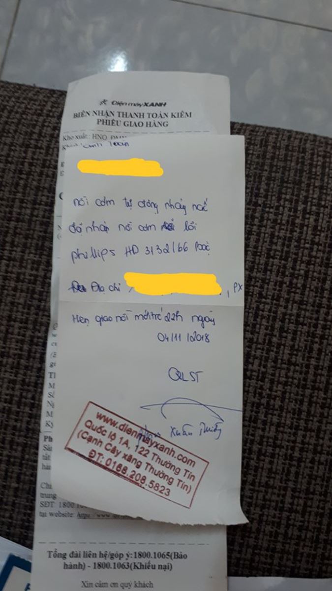 Ngày 30/10/2018, anh Toàn đã đến siêu thị Điện Máy Xanh tại Thường Tín để phản ánh về tình trạng sản phẩm, tại đây phía siêu thị đã đồng ý đổi mới sản phẩm cho khách hàng. Tin tưởng vào chất lượng sản phẩm cũng như uy tín phân phối hàng điện máy của Điện Máy Xanh, anh mang sản phẩm về sử dụng, ai dè mọi chuyện cũng không có gì thay đổi, khi gia đình tiếp tục phát hiện nồi cơm vẫn có hiện tượng vừa bấm nấc nấu cơm được vài phút đã nhảy nấc.