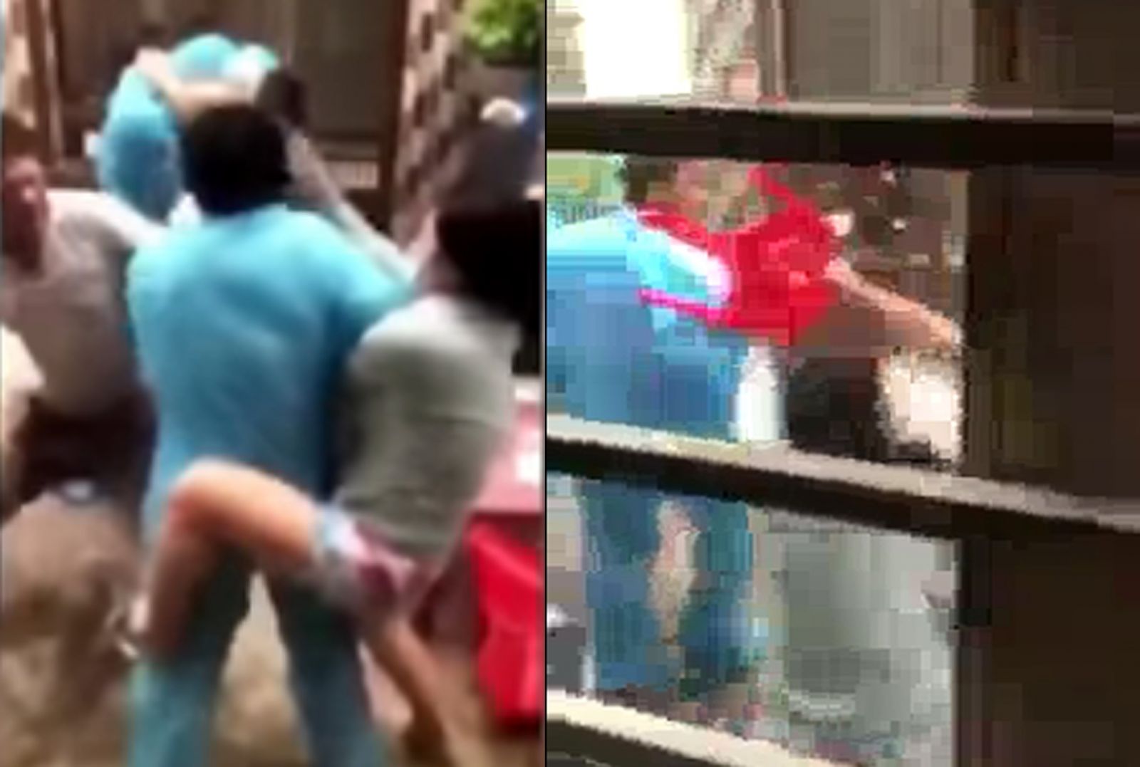 Sau đó, bà H.T.C.H. (vợ ông T.) cùng con gái chạy đến điểm lấy mẫu dùng bàn, ghế nhựa ném vào anh P. và N.. Những người này còn xé khẩu trang, đồ bảo hộ của các tình nguyện viên và khẩu trang của tổ trưởng Tổ dân phố 9.