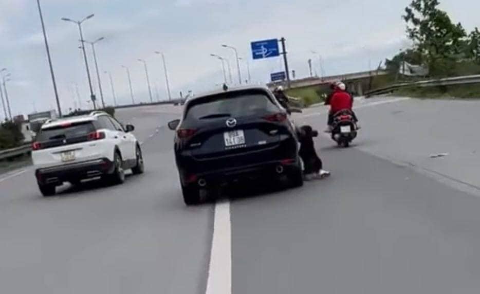 Lúc này có một phụ nữ mặc bộ đồ đen đã bám chặt vào cánh cửa bên phải vô lăng đòi vào xe. Nhưng lái xe đã tiếp tục rồ ga bỏ chạy, cố tình lạng lách, mục đích hất người phụ nữ xuống đường.