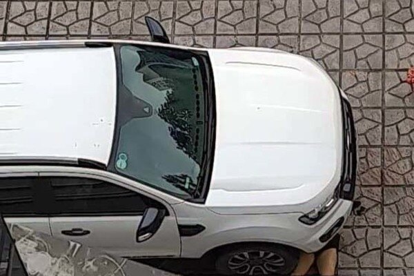 Báo Bảo vệ Pháp luật thông tin, hình ảnh tại hiện trường cho thấy, người tử vong mặc quần ngắn, nằm ngay bánh trước của chiếc xe ô tô màu trắng đậu dưới sân của tòa nhà trước lối lên xuống.
