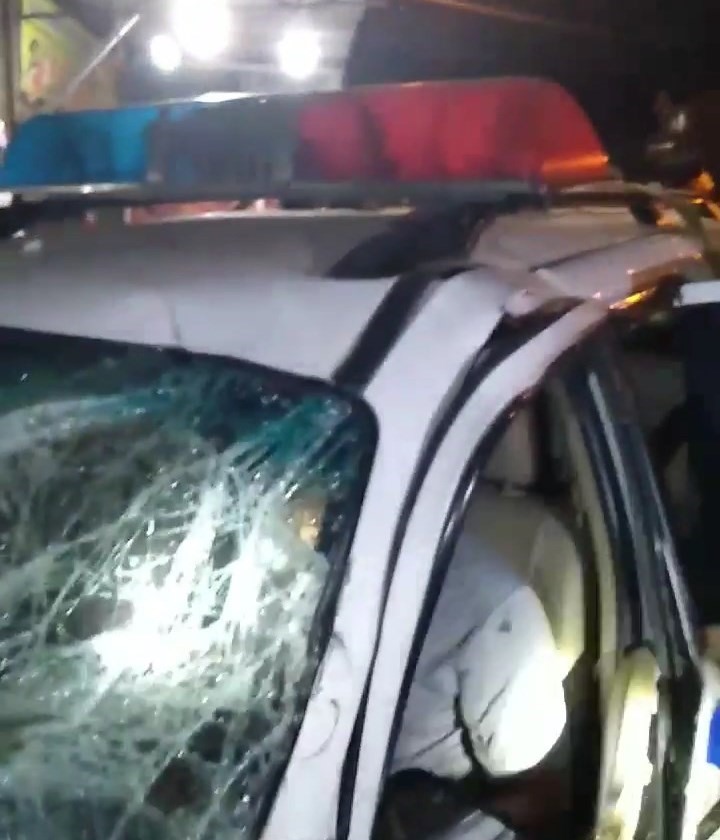 Tại hiện trường, xe ôtô gắn phù hiệu xe CSGT bị bể nát phần đầu, hư hỏng nặng. Tài xế ngồi trong xe mặc thường phục có dấu hiệu không tỉnh táo, cũng bị thương. Người dân đã phải hỗ trợ gỡ cửa xe để đưa tài xế ra ngoài.