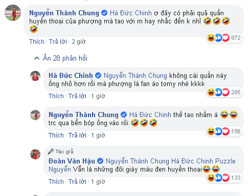 "Thầy Chíp" Đỗ Hùng Dũng thậm chí kéo tiền đạo Nguyễn Tiến Linh vào, dí dỏm bình luận: "Nguyễn Tiến Linh, ưa gì nhau mà chụp ảnh". Trong khi đó, trung vệ Trần Đình Trọng lại trêu đùa: "Ghép ảnh à?".