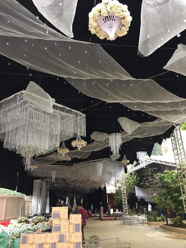 Theo tiết lộ từ người đăng bài, chỉ tính riêng rạp cưới đã "ngốn" 2,5 tỷ đồng của gia chủ. Chưa kể, không gian tiệc cưới được trang trí toàn bộ bằng hoa tươi vận chuyển từ Đà Lạt lên Cao Bằng theo đường máy bay. Rạp cưới được trang trí như một cũng điện nguy nga, lộng lẫy. Đám cưới cũng mời một số ca sĩ, nhạc sĩ có tiếng đến biểu diễn.
