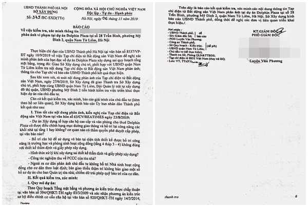 Ngày 06/11/2019, Sở Xây dựng Hà Nội vừa có báo cáo kiểm tra, xác minh thông tin báo chí phản ánh về những vi phạm tại Dự án chung cư cao cấp Dolphin Plaza, 28 Trần Bình (Mỹ Đình, Nam Từ Liêm, TP. Hà Nội) do Công ty Cổ phần TID làm chủ đầu tư (CĐT).