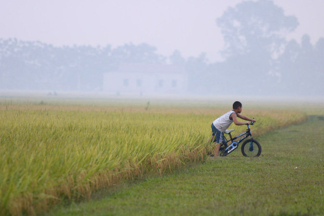 Đồng lúa chín vàng đẹp như tranh ở ngoại thành Hà Nội