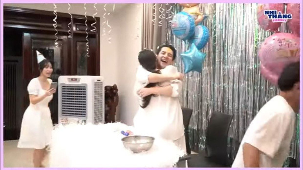 Ông Cao Thắng giành phần đập trứng trước. Sau một vài quả màu xanh là trứng đã luộc, anh quyết định chọn một trái màu hồng. Trứng vỡ khi đập, ông bố trẻ bất ngờ và ôm chầm lấy bà xã Đông Nhi. Họ vui mừng, hạnh phúc vì sẽ đón con gái đầu lòng.