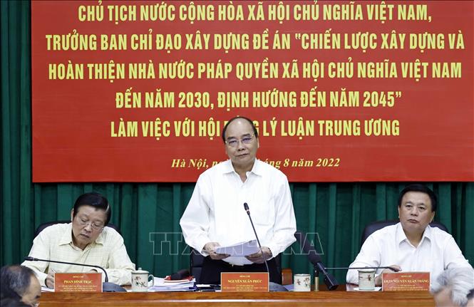 Chủ tịch nước yêu cầu Tổ Biên tập tiếp thu đầy đủ các ý kiến của Hội đồng Lý luận Trung ương để tiếp tục bổ sung, hoàn thiện Đề án và cho rằng trong thời gian tới, sau khi Nghị quyết được thông qua, Hội đồng Lý luận Trung ương sẽ có nhiệm vụ rất quan trọng là tiếp tục làm sáng tỏ các vấn đề về lý luận về xây dựng và hoàn thiện Nhà nước pháp quyền xã hội chủ nghĩa Việt Nam, góp phần hoàn thành nhiệm vụ lịch sử, trọng trách cao cả nhưng cũng rất nặng nề mà toàn Đảng, toàn dân ta phải cùng nhau nỗ lực để phát triển đất nước nhanh, bền vững trong nhiều năm tới.