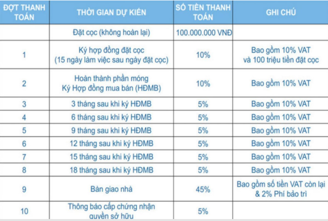 Cũng theo người này, dự án sẽ được mở bán chính thức sau Tết Nguyên đán 2018. Tuy nhiên, đến thời điểm hiện tại, nhiều căn hộ đã được nhà đầu tư, khách hàng đặt giữ chỗ ưu tiên. L. nhấn mạnh: “Giá bán căn hộ chỉ 45 triệu/m2 (chưa tính thuế VAT), với một căn hộ 2 phòng ngủ sẽ có giá dao động từ 3,8 – 4,2 tỷ đồng/ căn”.