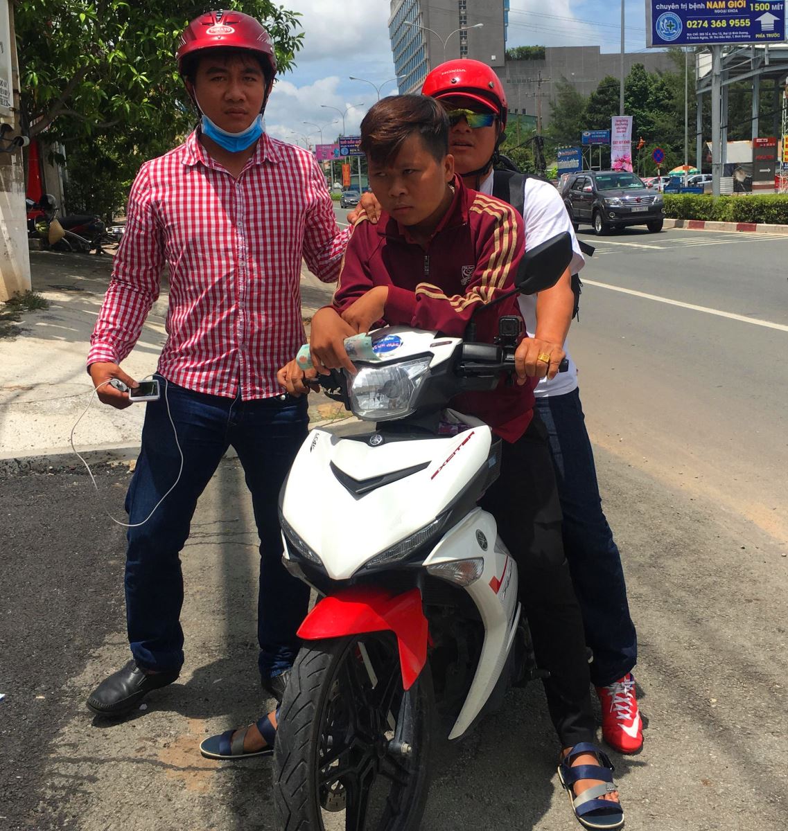 Tiếp nhận thông tin vụ việc, "hiệp sĩ" Nguyễn Thanh Hải cho biết: "Trong lúc tôi và đồng đội đang ghi nhận, tìm hiểu thông tin thì đối tượng tiếp tục gọi điện yêu cầu cô gái đem tiền ra gặp mặt. Lúc này, tôi quyết định cùng các đồng đội gồm: Trần Phước Lộc, Hứa Thanh Tùng bí mật theo bị hại đến địa điểm giao tiền".