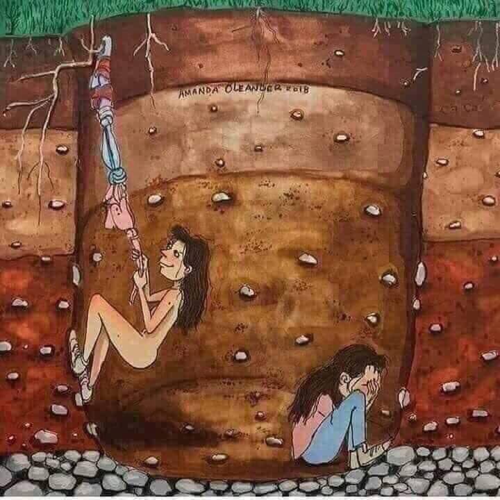 Câu chuyện hai người phụ nữ dưới vực sâu: Một người không sợ miệng đời mà chấp nhận bỏ hết áo quần làm thành sợi dây vượt lên miệng hang cũng như vượt qua thị phi. Người thứ 2 thì chỉ biết ngồi khóc vì sợ miệng đời sợ nhục nhã nên suốt đời họ sẽ chết dần chết mòn trong cái hố sâu mang tên miệng đời.