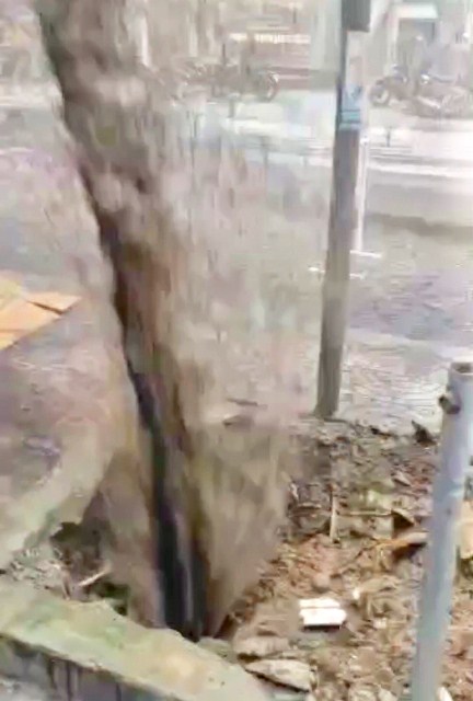 Khi đường ống bị vỡ, người dân thấy nước phun lên đục ngầu, đen ngòm rồi tràn ra đường, bốc mùi hôi…