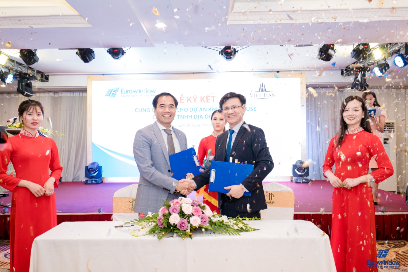 Tại hội thảo, Eurowindow đã ký kết hợp đồng với Công ty TNHH Địa ốc Việt Hàn về việc cung cấp, lắp đặt cửa và vách nhôm kính lớn cho dự án Khu dân cư và Chung cư cao cấp Việt – Hàn, tại khu 3, phường Hồng Gai, TP. Hạ Long, Quảng Ninh.