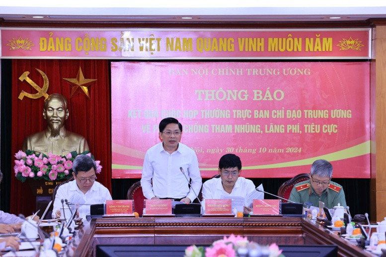 Chiều nay (30/10), Ban Nội chính Trung ương tổ chức thông báo kết quả cuộc họp thường trực Ban chỉ đạo Trung ương về phòng, chống tham nhũng, lãng phí, tiêu cực do Tổng Bí thư Tô Lâm - Trưởng Ban Chỉ đạo chủ trì vào sáng cùng ngày.