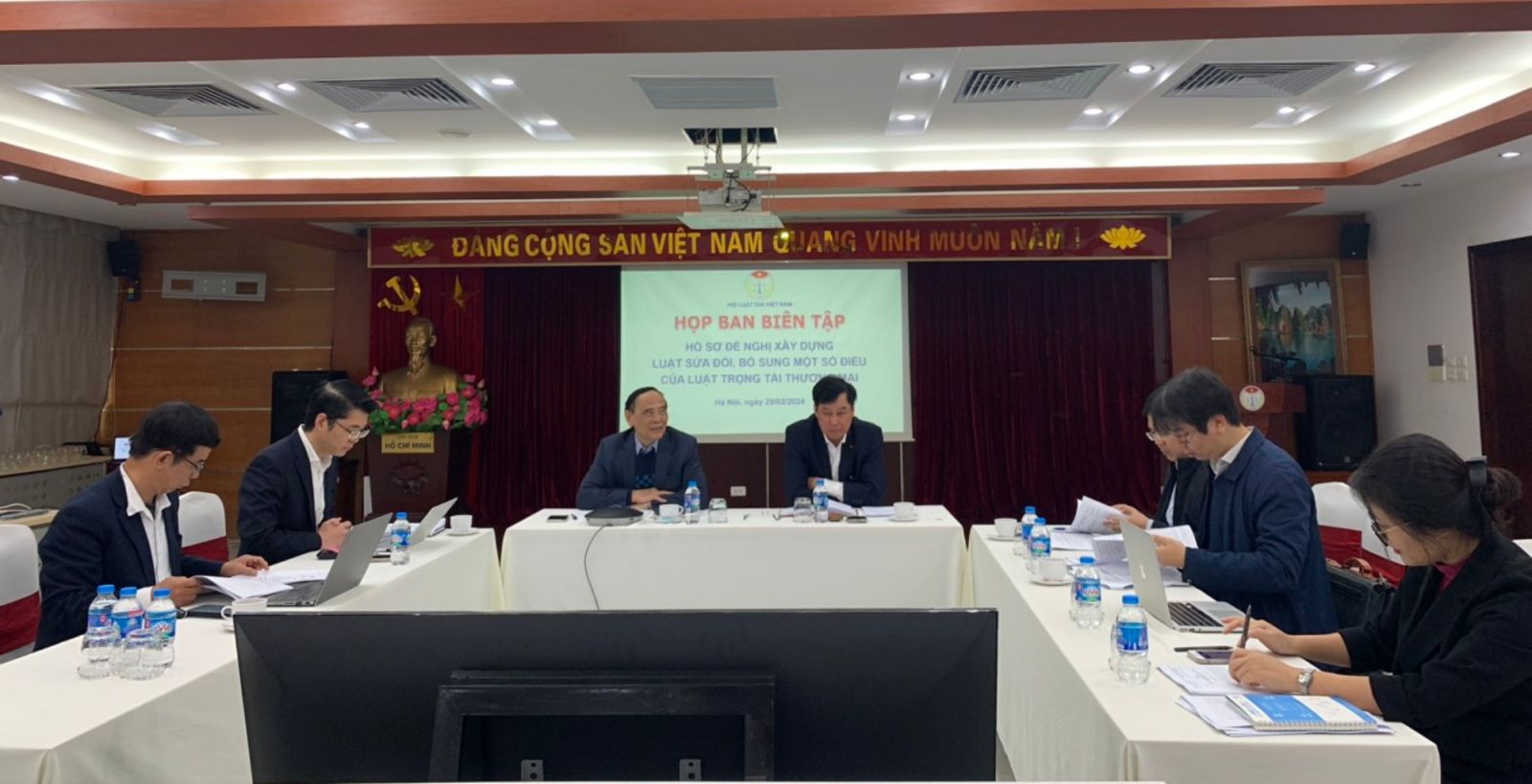 Sáng 29/2, Hội Luật gia Việt Nam tổ chức cuộc Họp Ban biên tập hồ sơ đề nghị xây dựng Luật sửa đổi, bổ sung một số điều của Luật Trọng tài Thương mại (lần 3). TS.Nguyễn Văn Quyền - Chủ tịch Hội Luật gia Việt Nam; TS.Trần Công Phàn – Phó Chủ tịch, Tổng thư ký Hội Luật gia Việt Nam, ĐBQH khóa XV chủ trì cuộc họp. Cuộc họp được kết nối trực tuyến tới đại diện các bộ, ngành và các chuyên gia, các nhà khoa học.